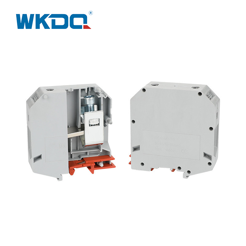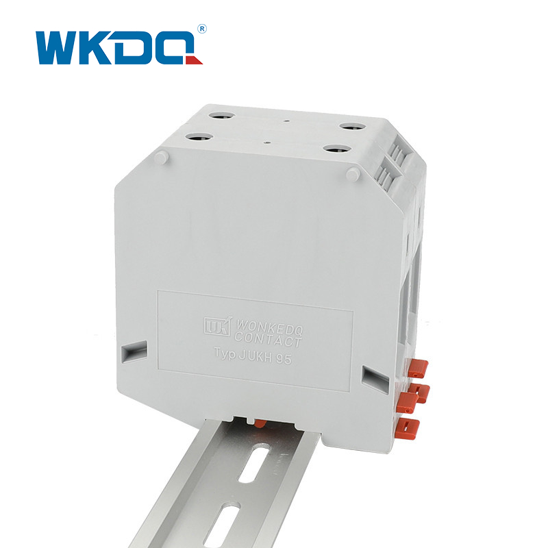 JUKH 고전류 단자대는 뛰어난 구조 기능으로 안전하고 안정적인 연결을 제공합니다. 여기에는 프리즘 모양의 슬리브 베이스에 있는 와이어의 3점 중심 설정, 낮은 접촉 저항을 위한 홈이 있는 접촉 표면, 스프링 장착 요소로 고정된 나사가 포함됩니다. 이러한 터미널 블록에 대한 추가 세부 정보는 다음과 같습니다.